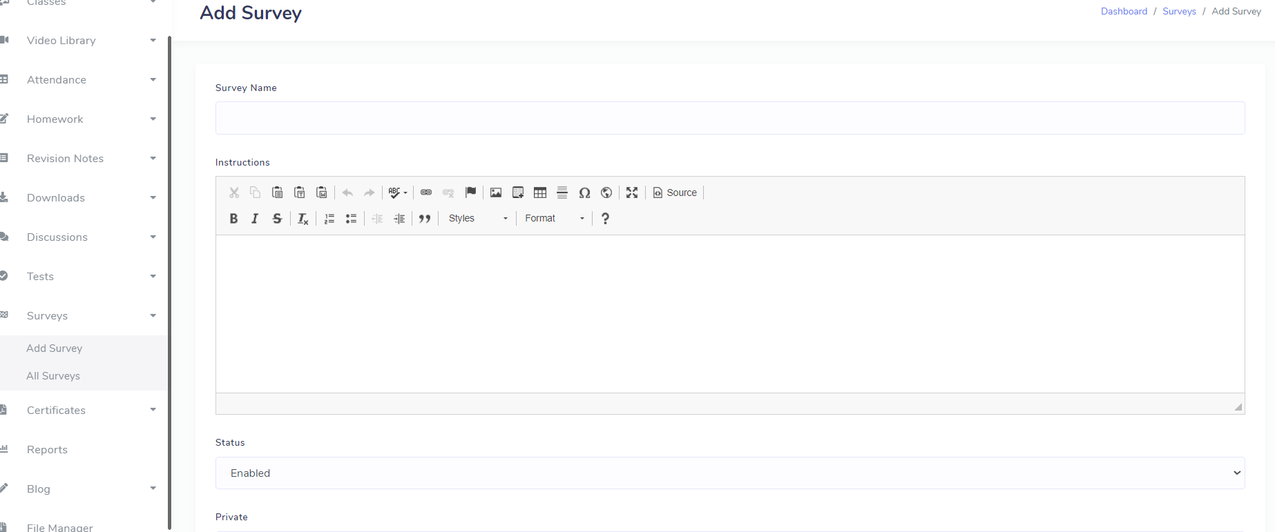 - User Management: Manage users, including students, instructors, and administrators, with roles and permissions.